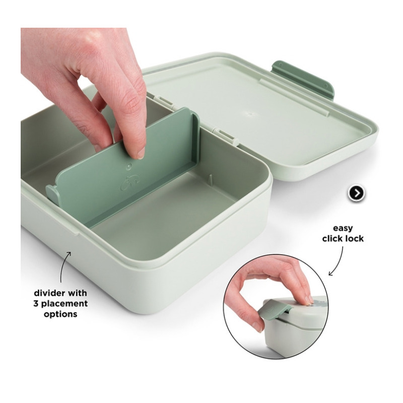 Sprytny, wyjmowany separator pozwala oddzielić jedzenie i przekąski dokładnie tak,