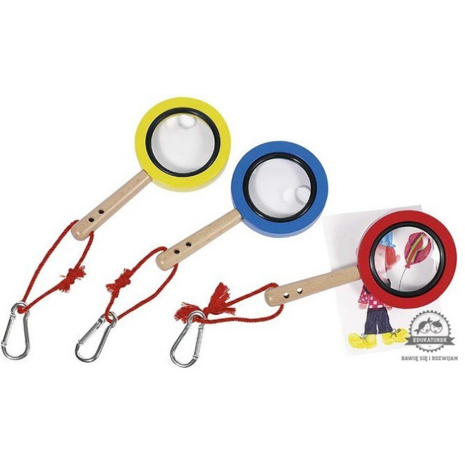 Lupa posiada sznureczek i praktyczny karabinek do zamocowania jej do spodni.
