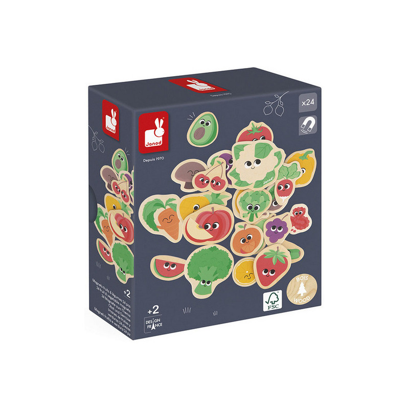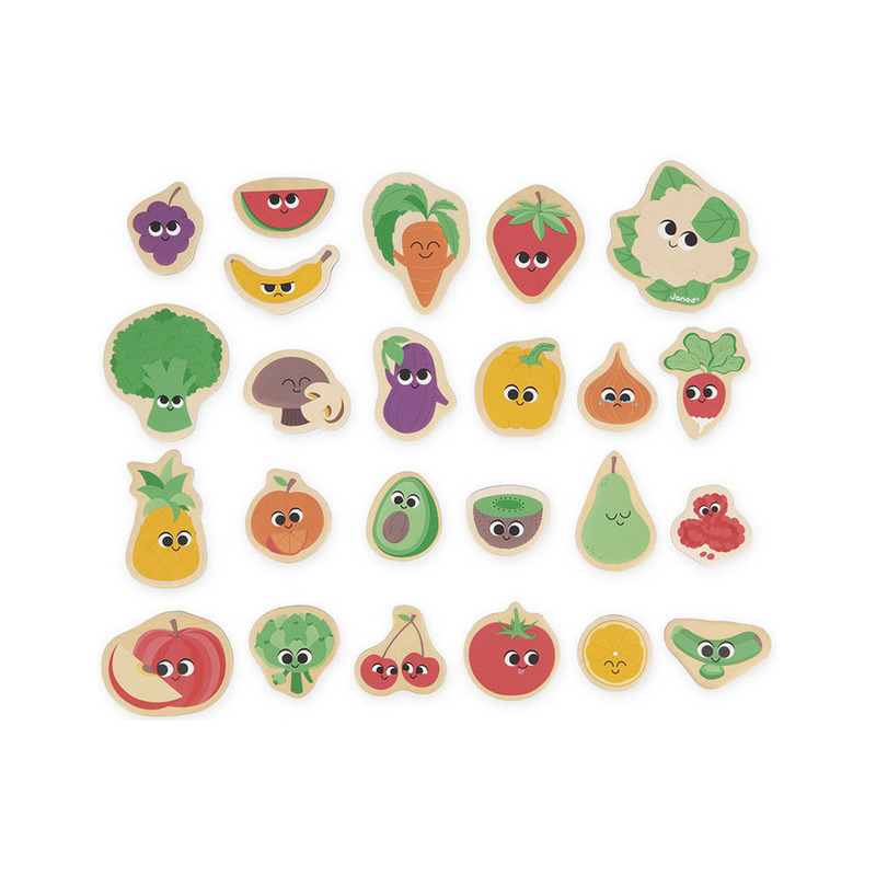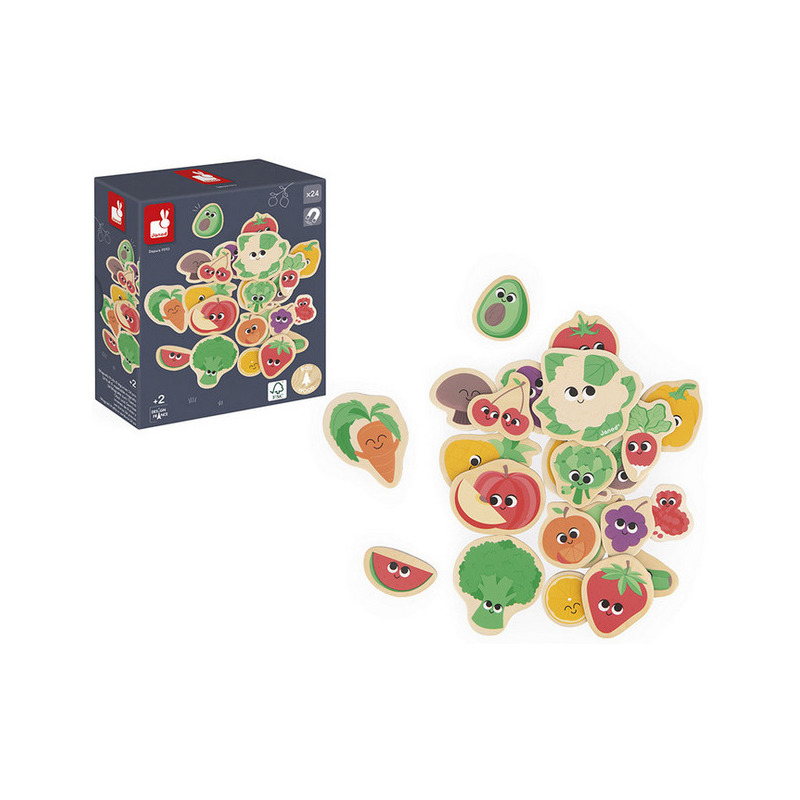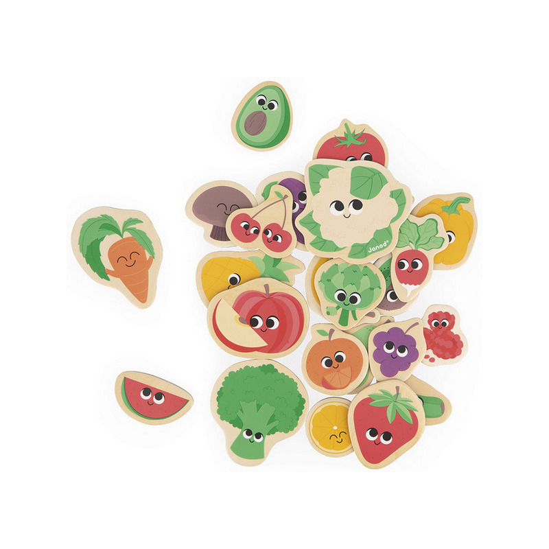 OWOCE I WARZYWA drewniane magnesy na lodówkę 24 szt. Janod 2+