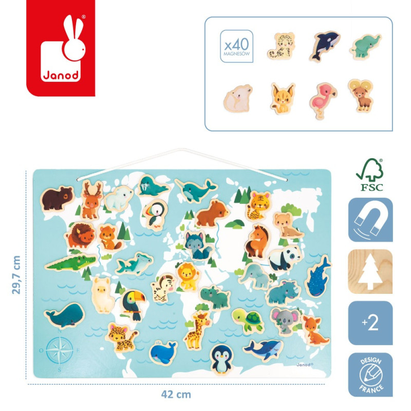 Magnetyczna układanka mapa świata Małe zwierzątka