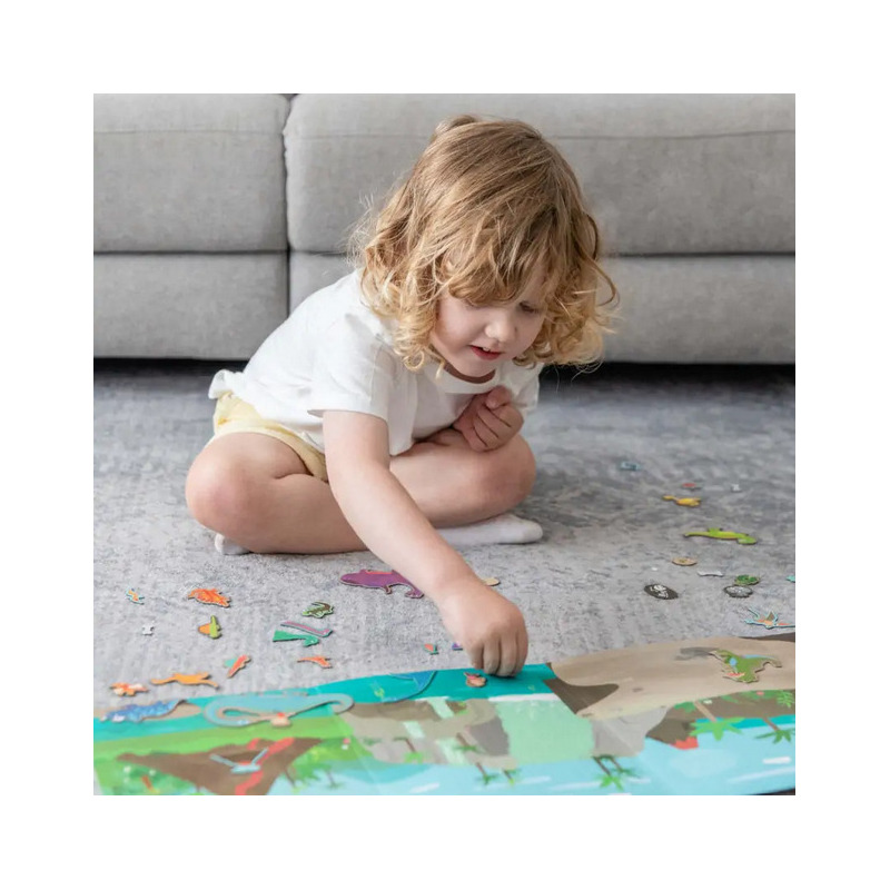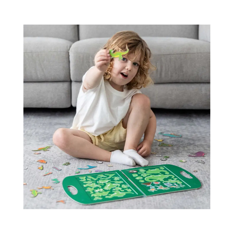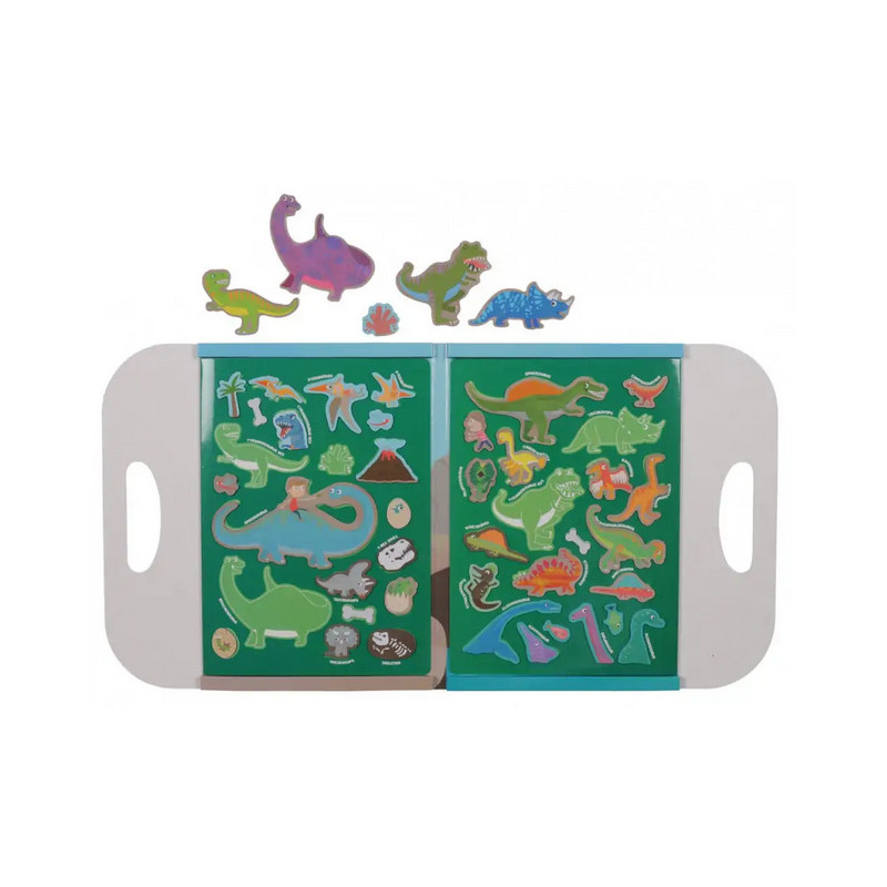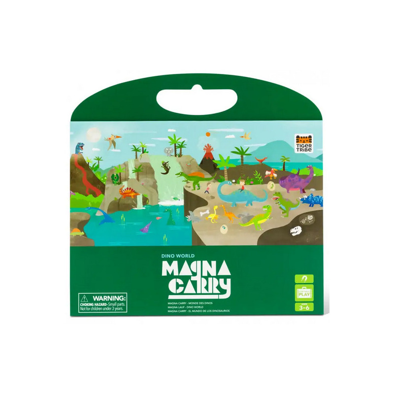 Świat Dinozaurów od Tiger Tribe to przenośna magnetyczna plansza z całą masą obrazków do zabawy. Spłyń wodospadem, eksploruj wybuchający wulkan, zajmij się jajkiem dinozaura! Do wykorzystania mnóstwo prehistorycznych postaci do zabawy, w tym mały triceratops, czy pływający plezjozaur. Twórz nowe scenki przy każdej zabawie. A gdy skończysz, sprzątanie będzie dużo łatwiejsze dzięki układance „dopasuj magnesy” na pudełku. Raz, dwa, trzy i posprzątane!