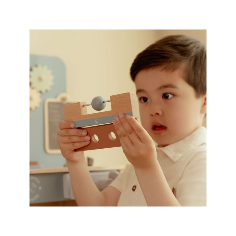 Jeśli Twoje dziecko uwielbia konstruować i naśladować dorosłych, ten drewniany warsztat w pastelowych odcieniach błękitu będzie strzałem w dziesiątkę. To idealny prezent dla małego konstruktora, który marzy o tym, by wspólnie z tatą lub mamą skręcać, piłować i tworzyć własne projekty.