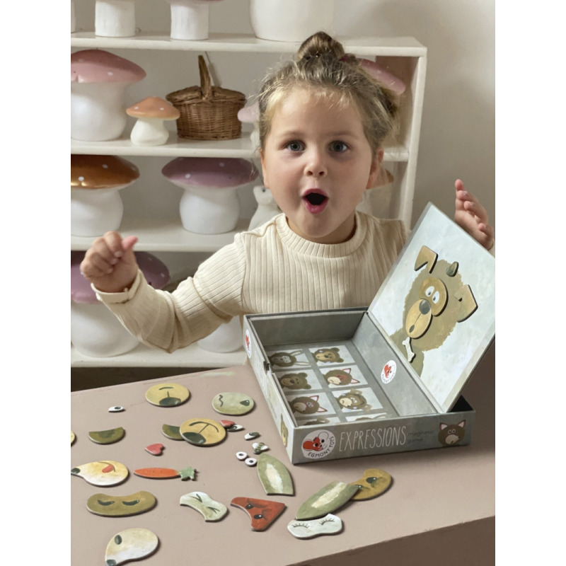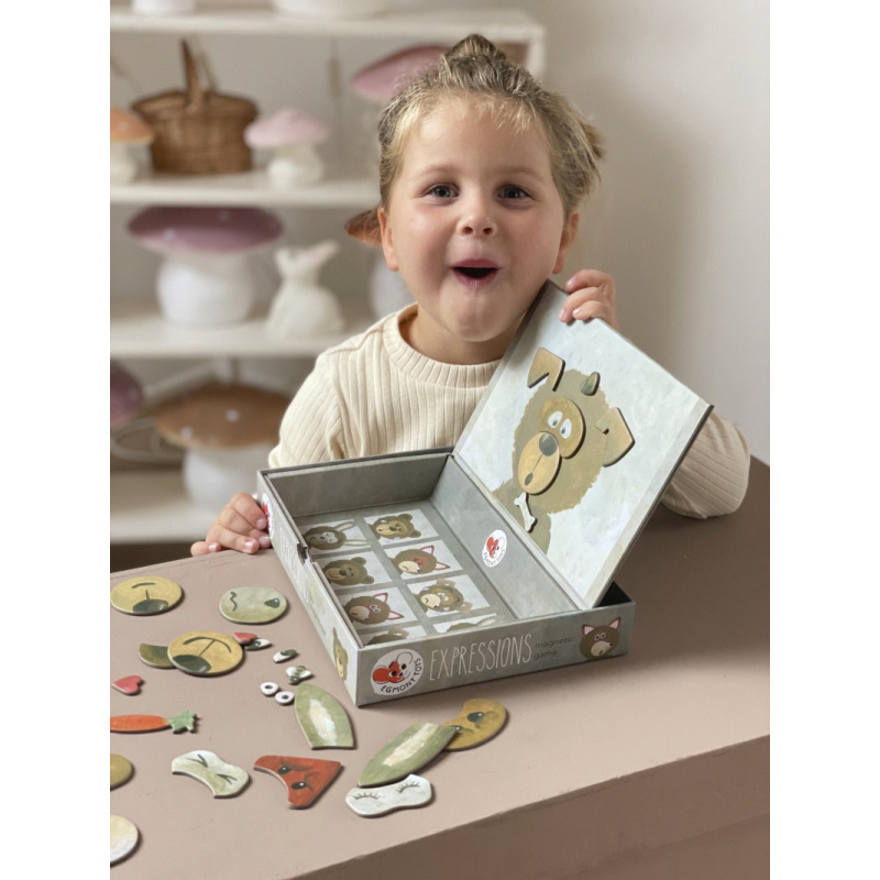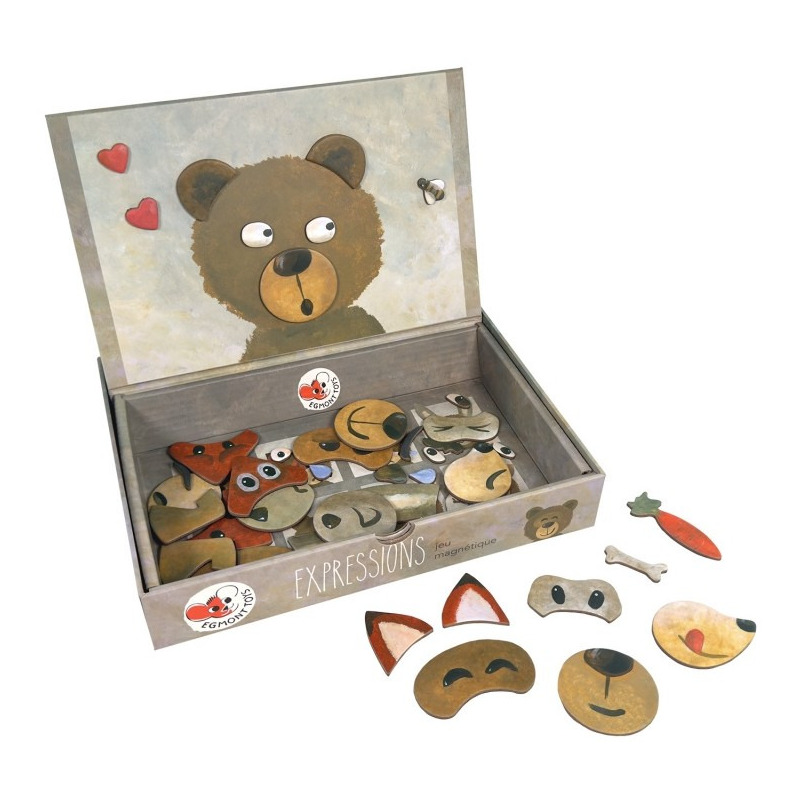 Jak się czują Twoje ulubione zwierzątka? Są szczęśliwe, smutne, a może głodne? Gra magnetyczna pozwala na tworzenie różnych mimik zwierzęcych buziek – niedźwiedzia, lisa, psa i królika!