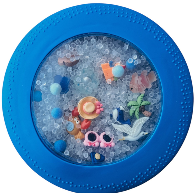 - Uspokajająca zabawa sensoryczna – delikatne ściskanie woreczka, przesuwanie elementów i obserwowanie ruchu wewnątrz działa wyciszająco;