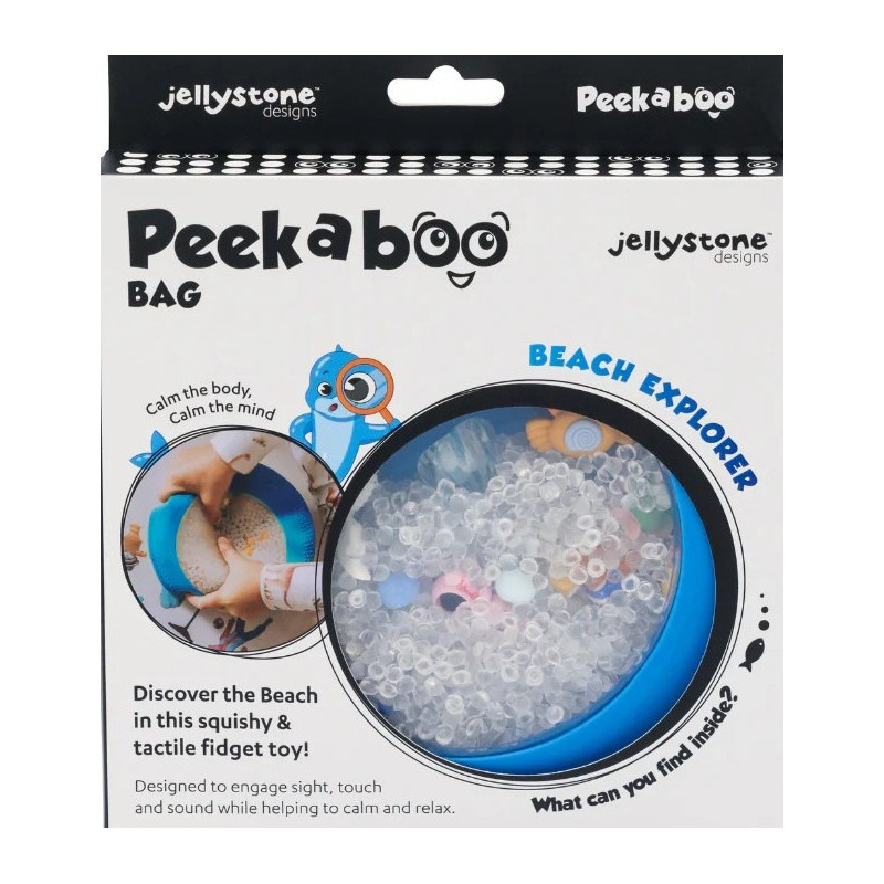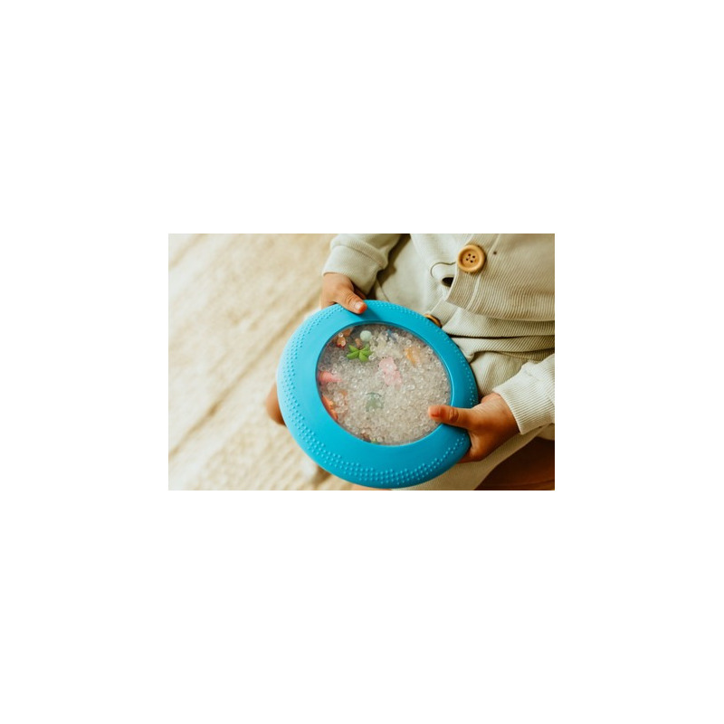 Peekaboo – A-Ku-Ku! to sensoryczna zabawka w formie zamkniętego, elastycznego dysku, wypełniona bezpiecznymi, miękkimi figurkami tematycznymi. Przez przezroczyste okienko dziecko może podglądać, przesuwać i wyszukiwać ukryte elementy, rozwijając koncentrację, koordynację ręka-oko oraz małą motorykę. Woreczek idealnie nadaje się do zabawy w domu, w samochodzie, w poczekalni – wszędzie tam, gdzie maluch potrzebuje spokojnej, a jednocześnie angażującej aktywności. Jest bezpieczny dla najmłodszych - świat zwierząt, roślin i kosmosu jest szczelnie zamknięty w dysku sensorycznym.