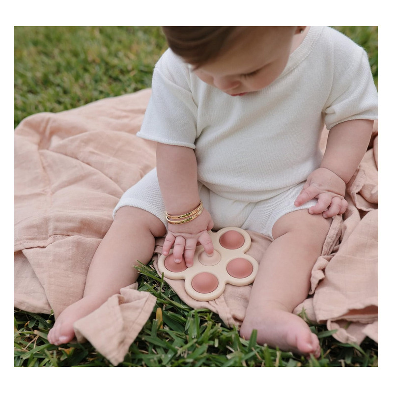 Silikonowy kwiatek Press Toy to zabawka inspirowana naturą, w idealnym rozmiarze dla małych rączek. Kolorowe guziczki zrobione z silikonu spożywczego, zachęcają do wciskania rozwijając umiejętności motoryczne i sensoryczne. Dzięki swojej funkcji “push and pop” trudno się oprzeć chęci wciskania guziczków, co zapewni godziny wspaniałej zabawy dla dziecka, a nawet wciągnie dorosłych.