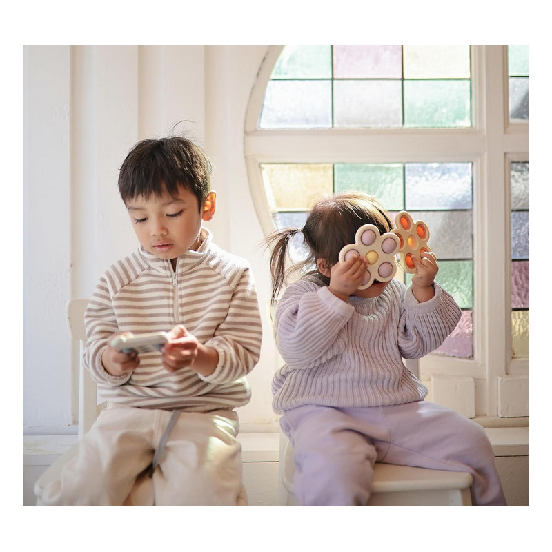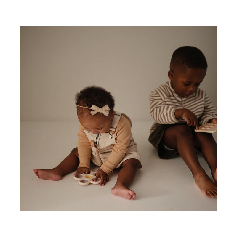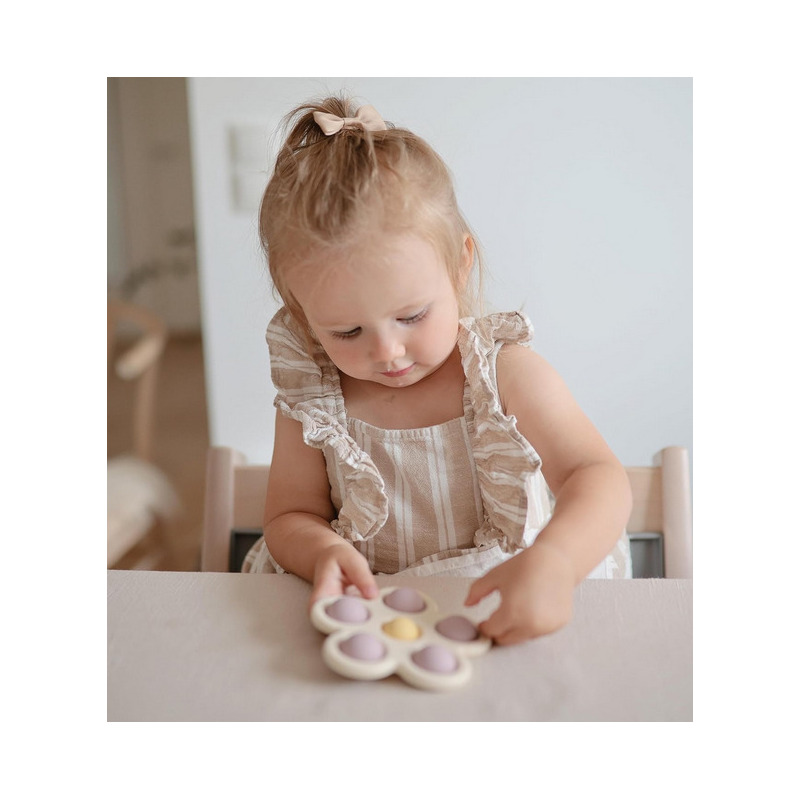 Silikonowy kwiatek Press Toy to zabawka inspirowana naturą, w idealnym rozmiarze dla małych rączek. Kolorowe guziczki zrobione z silikonu spożywczego, zachęcają do wciskania rozwijając umiejętności motoryczne i sensoryczne. Dzięki swojej funkcji “push and pop” trudno się oprzeć chęci wciskania guziczków, co zapewni godziny wspaniałej zabawy dla dziecka, a nawet wciągnie dorosłych.