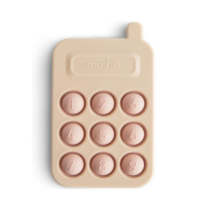 Telefon z silikonowymi guziczkami do wciskania Press Toy marki Mushie zapewnia kontakt z kolorami, miękkimi guziczkami zachęcającymi do ich wciskania oraz cyferkami. Wspomaga rozwój umiejętności sensorycznych i motorycznych, tak ważnych dla całego późniejszego rozwoju dziecka. Dzięki swojej funkcji “push and pop” trudno się oprzeć chęci wciskania guziczków, co zapewni godziny wspaniałej zabawy dla dziecka, a nawet wciągnie dorosłych.