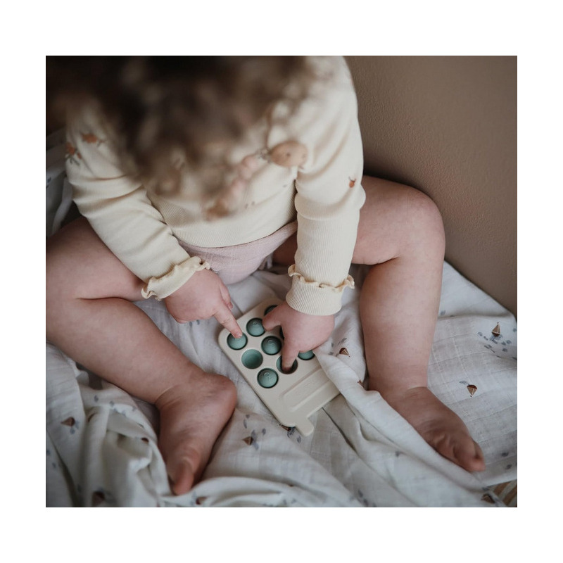 Telefon z silikonowymi guziczkami do wciskania Press Toy marki Mushie zapewnia kontakt z kolorami, miękkimi guziczkami zachęcającymi do ich wciskania oraz cyferkami. Wspomaga rozwój umiejętności sensorycznych i motorycznych, tak ważnych dla całego późniejszego rozwoju dziecka. Dzięki swojej funkcji “push and pop” trudno się oprzeć chęci wciskania guziczków, co zapewni godziny wspaniałej zabawy dla dziecka, a nawet wciągnie dorosłych.
