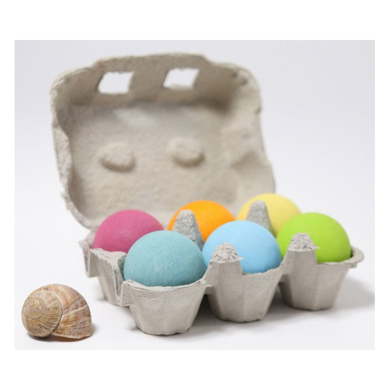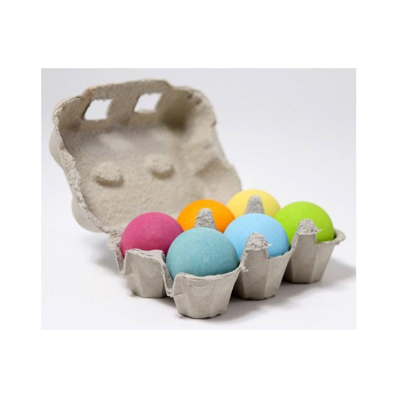 DREWNIANE KULECZKI pastelowe o śr. 45 mm zestaw 6 szt. Grimm's 1+