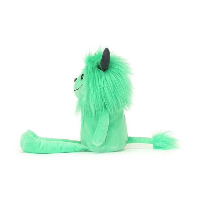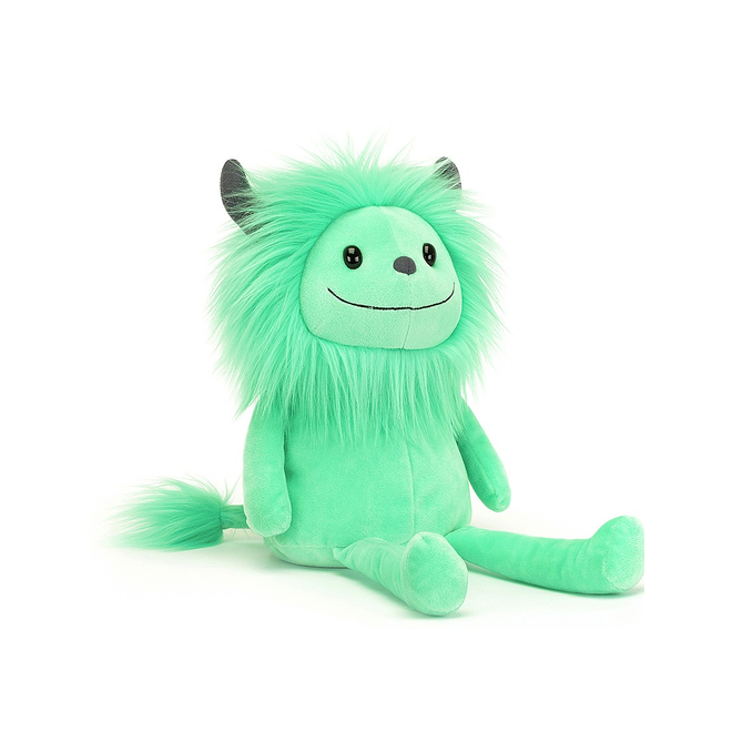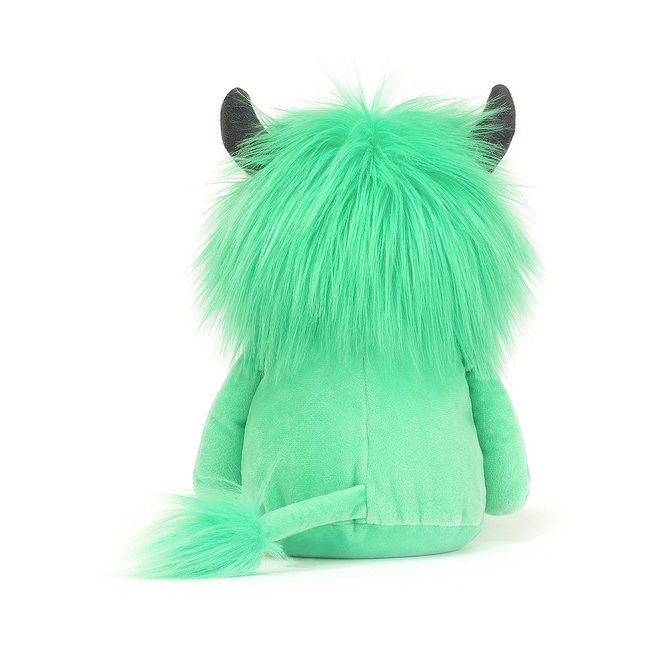 Miętowy Chochlik marki Jellycat to bardzo milutki i przyjemny w dotyku pluszak. Ma puszystą, miękką grzywę, zamszowo szare różki, uśmiechniętą buźkę, mięciutki brzuszek i łapki oraz kędzierzawy ogonek. Ten uroczy łobuz lubi psocić, bawić się i przytulać.