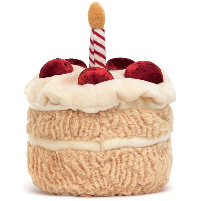 Czy istnieje urodzinowy torcik, który wygląda niezwykle apetycznie, ale tak naprawdę nie jest do jedzenia? Taki, do którego możemy się do woli przytulać i który uśmiecha się przyjaźnie? Z marką Jellycat to możliwe. Przytulanka w postaci torcika to przyjemna w dotyku i całkowicie bezpieczna maskotka. Piękne kolory, różnorodne faktury materiałów, z których została uszyta i jej uroczy uśmiech z pewnością zainteresują dzieci. Przytulanka może stanowić również nietuzinkowy prezent dla osoby dorosłej.