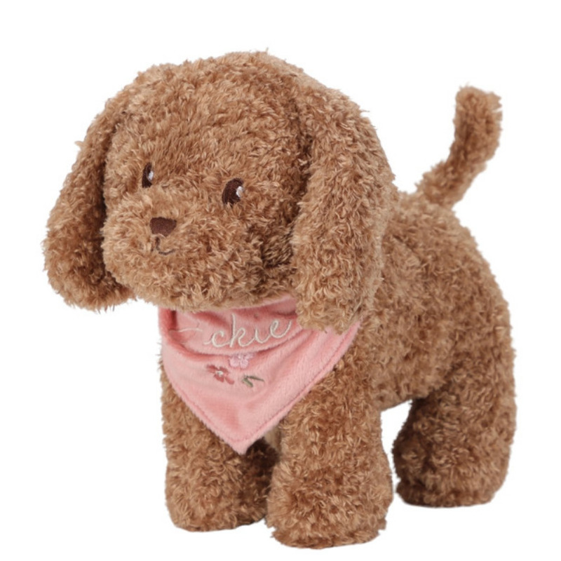 Dla małych miłośników piesków mamy Jackie – przytulankę w pięknej torebce z kwiatowym nadrukiem. Psiak posiada miękkie futerko, różową bandamkę z wyszytym swoim imieniem oraz to co wszystkie psiaki lubią najbardziej, czyli kosteczkę do zabawy. Kostka posiada magnes i jest ulubioną zabawką Jackie. Oczka psiaka są wyszyte. Dzięki specjalnej torbie transportowej, każdy maluch może zabrać psiaka wszędzie ze sobą, czy to na wycieczkę, czy do babci a może nawet do przedszkola. Torebka ma otwór z przodu, przez którą nasz zwierzak może swobodnie spoglądać. Jackie z pewnością stanie się ukochanym towarzyszem!