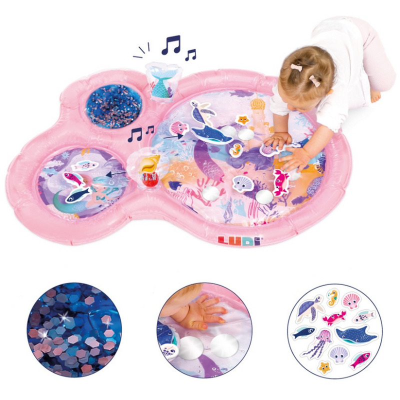 Wodna mata w odcieniach różowego do aktywności na brzuszku. Urocze motywy z morskich głębin i barwne morskie zwierzątka do przesuwania pod przezroczystą powierzchnią pobudzą ciekawość i aktywność Malucha. Zabawa na macie wodnej stymuluje różna partie mięśni, przez co wspomaga prawidłowy rozwój motoryczny i sensoryczny dziecka.
