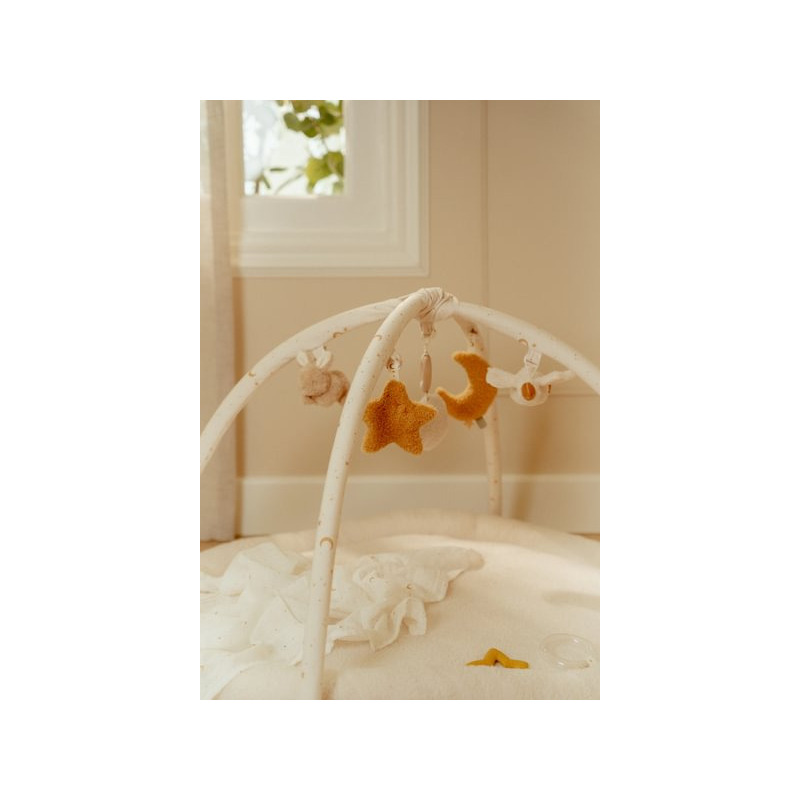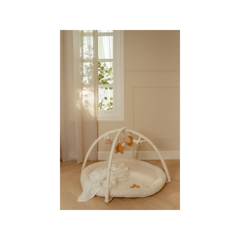Stwórz dla swojego dziecka przytulne miejsce do zabawy i rozwoju już od pierwszych chwil życia. Mata aktywizująca z kolekcji Newborn Naturals od Little Dutch to miękka, estetyczna i funkcjonalna przestrzeń, która wspiera rozwój sensoryczny i motoryczny niemowlęcia. Dzięki pięciu zawieszkom o zróżnicowanych kształtach i fakturach, maluszek może ćwiczyć chwytanie, obserwację i koordynację ruchową w bezpiecznym otoczeniu.