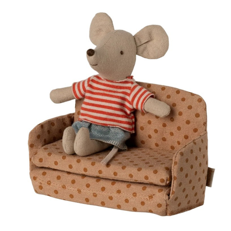 Dzięki kompaktowym wymiarom sofa wpasuje się do każdego domku Maileg, tworząc przytulne wnętrze.