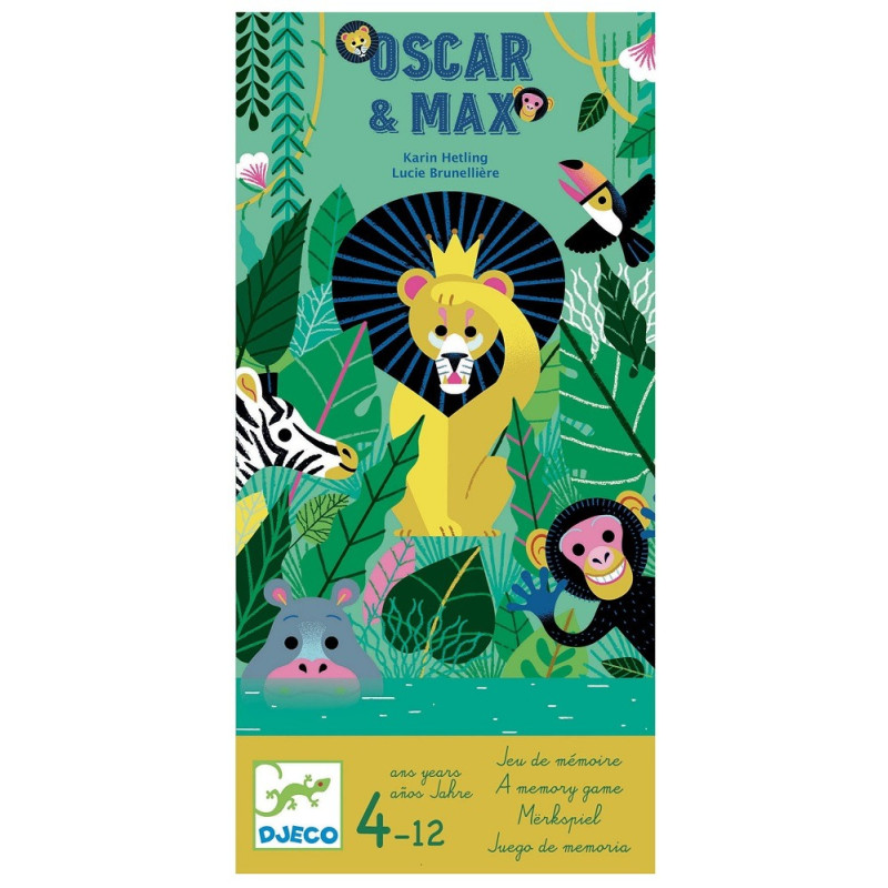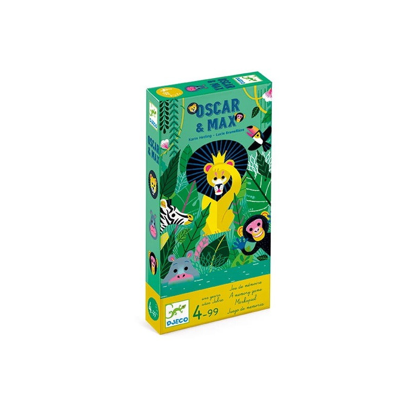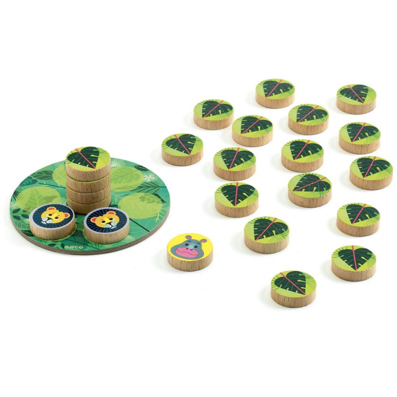 - 1 planszę "dżungla", 37 drewnianych pionków (10 zebr, 10 hipopotamów, 10 papug, 6 lwa Oskar, 1 małpa Max)