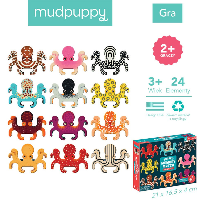 Gra pamięciowa Ośmiornice składa się 12 par bardzo kolorowych,