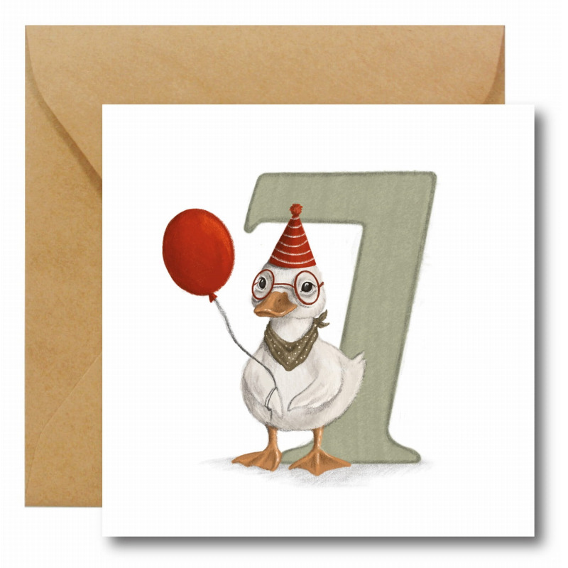 KACZOREK Z BALONIKIEM kartka okolicznościowa na siódme urodziny Hi Little