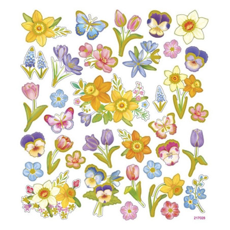 zeszytów i dekoracji wiosennymi kwiatkami.