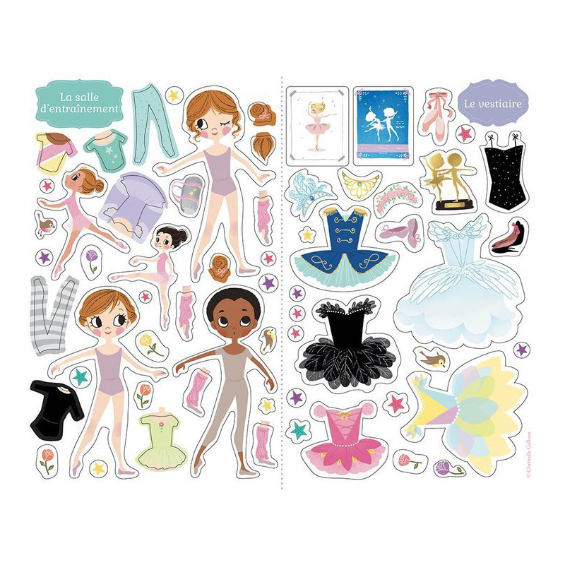 ZESTAW ZAWIERA: 4 plansze do naklejania oraz 180 naklejek z motywem tańca, lekcji baletu oraz strojów