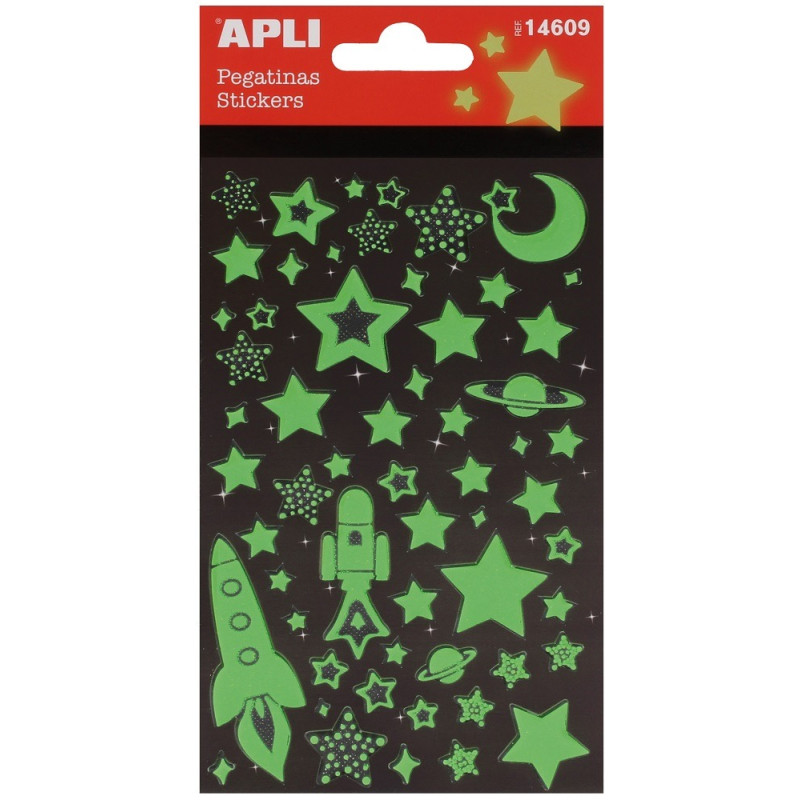 - 58 naklejek jednorazowego użytku świecących w ciemności z motywem kosmosu