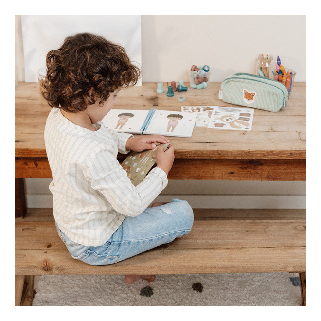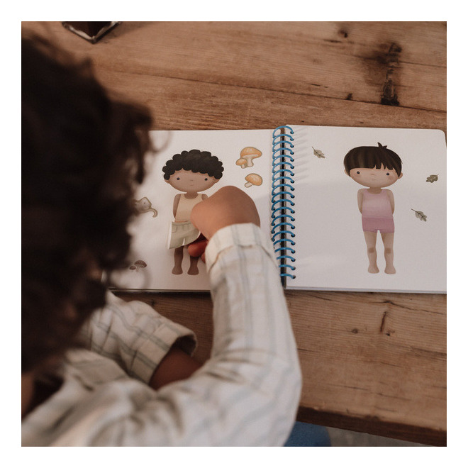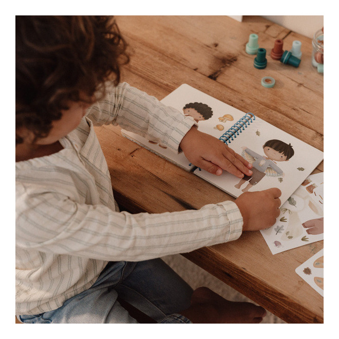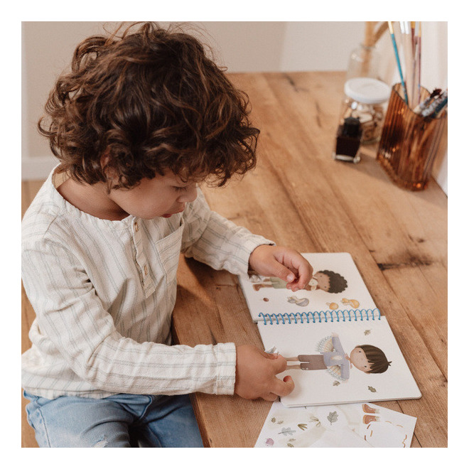 Zeszyt z naklejkami ubieranka Jim & friends z kolekcji Forest Friends to świetna zabawa kreatywna! W co dziś ubierzesz swoich ulubionych bohaterów? Dzięki tej książeczce - ubierance zamienisz się w kreatora lub kreatorkę mody.