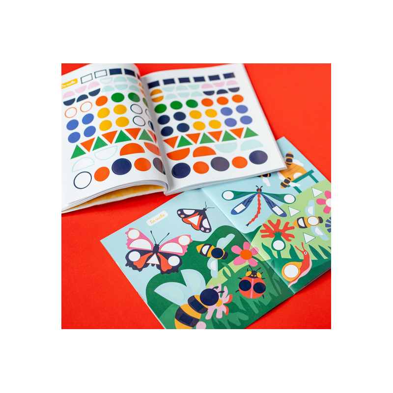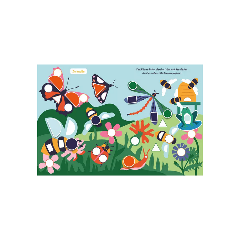 Zestaw zawiera ilustrowaną książeczkę oraz 2000 naklejek o geometrycznych kształtach do wyklejania. W zestawie znajdują się ponumerowane arkusze, które pomagają maluchowi odnaleźć właściwy element. Polana, ule, ocean, a nawet las tropikalny, w książeczce znajdziecie wiele krajobrazów, w których można odkryć zwierzęta. Dzięki wygodnej formie zeszytu zestaw doskonale sprawdzi się w trakcie podróży.