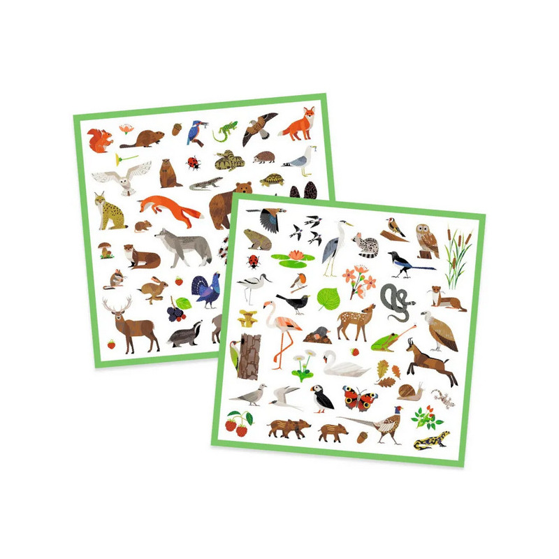 Naklejki z motywami europejskich zwierząt: od dobrze znanych, takich jak jelenie, lisy i dziki, po mniej znane- cietrzewie, borsuki i szczygieły – dzieci odkryją bogatą różnorodność europejskiej flory i fauny.
