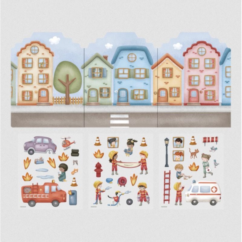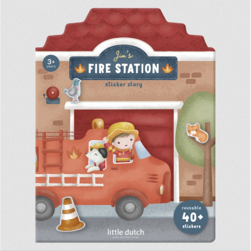 STRAŻ POŻARNA I KARETKA naklejki wielokrotnego użytku 40 szt. Jim & Friends Little Dutch 3+