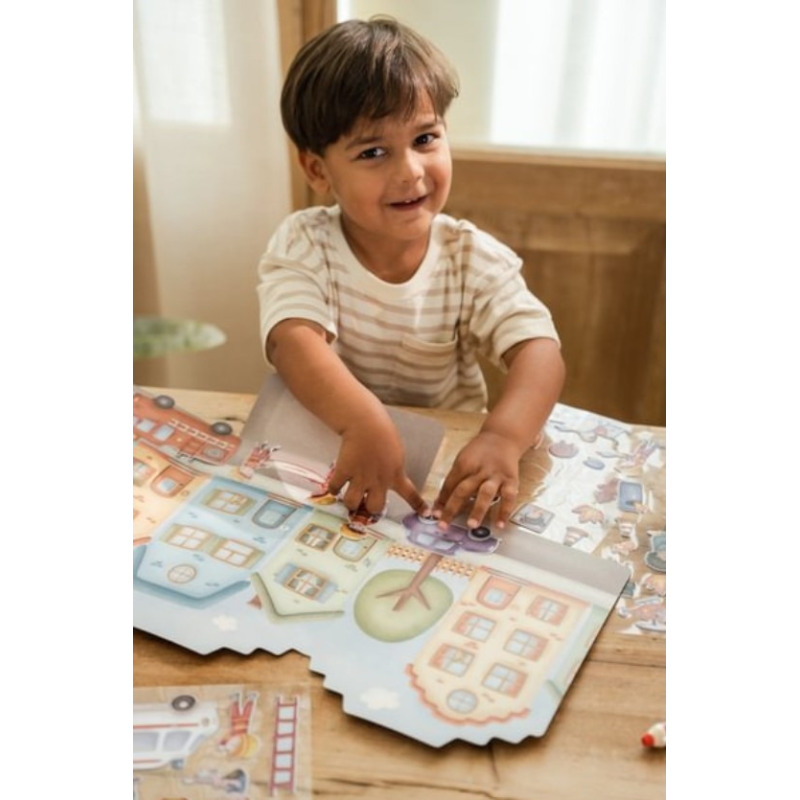 Wyrusz w pełną przygód podróż z Jimem po jego kolorowej krainie od Little Dutch! Ten barwny zestaw naklejek wielokrotnego użytku przeniesie Twoje dziecko w świat wyobraźni, gdzie każda historia o ruchu drogowym może wyglądać inaczej.