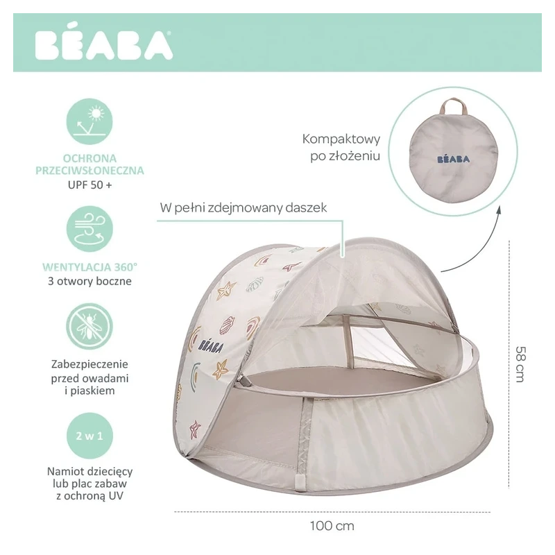 Beaba Breezynest UV – kompaktowy plażowy namiot ochronny dla dzieci 100 x 58 cm