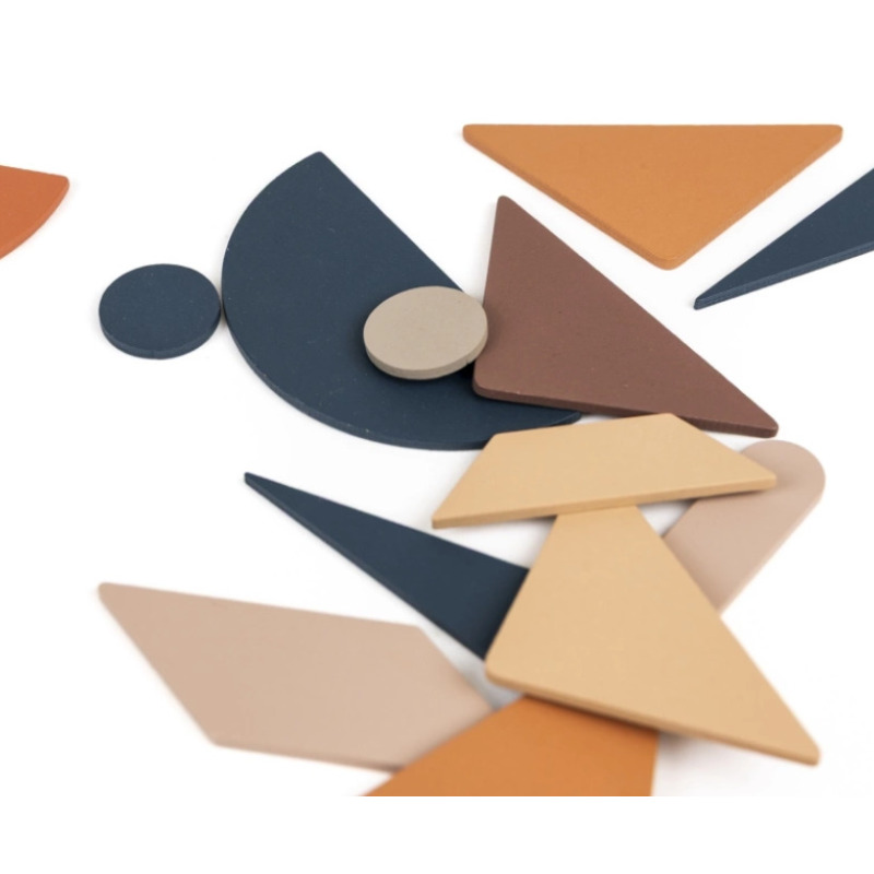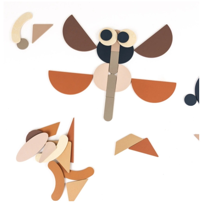 Drewniana układanka zachęca do kreatywnych zabaw, dzięki którym dzieci odkrywają kolory i kształty oraz wymyślają historie, tworząc zwierzęta, wzory lub abstrakcyjne dzieła. Idealne do rozwijania małej motoryki, wyobraźni i świadomości przestrzennej. Poetycka, uspokajająca i nieskończenie kreatywna aktywność!