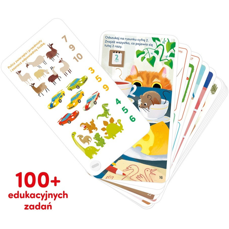 Różnorodne zadania rozwijają logiczne myślenie, spostrzegawczość i uczą liczyć do 10.