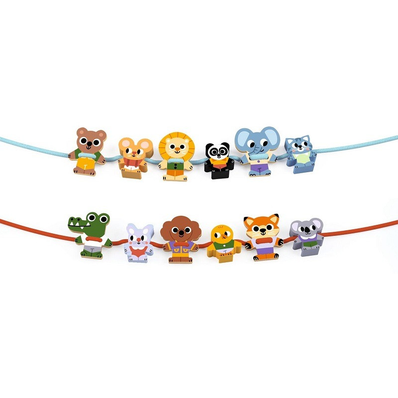 - 12 elementów do nawlekania oraz 2 sznurki.