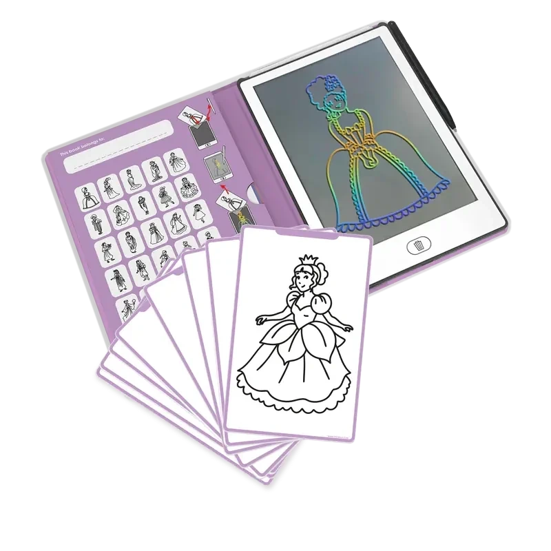 KIDYDRAW-MINI to nowoczesny tablet do rysowania z ekranem LCD, który wspiera rozwój zdolności artystycznych najmłodszych. Dzięki szablonom dzieci uczą się rysować zamki, korony, jednorożce i inne baśniowe motywy w prosty, przystępny sposób. Kompaktowy rozmiar pozwala zabrać go wszędzie – do szkoły, na dwór czy w podróż do magicznej krainy.