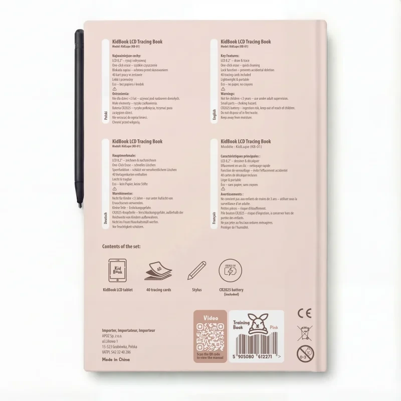 To produkt stworzony przez rodziców i testowany przez dzieci. Każdy element - od kart pracy, przez ergonomię tabletu, po sposób działania - został zaprojektowany tak, aby wspierać rozwój dziecka w spokojny, mądry i angażujący sposób.