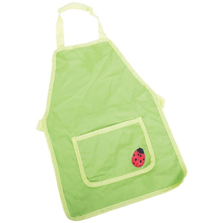 Fartuszek w zielonym kolorze z motywem biedronki na kieszonce