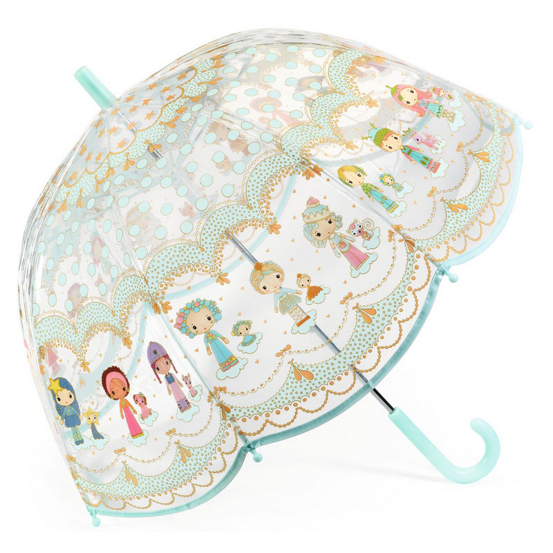 Laleczki Tinyly zdobią parasol marki Djeco! Znane i lubiane bohaterki tego bajkowego świata wraz ze swoimi towarzyszami od dziś chronią maluchy przed deszczem. Parasolka jest utrzymana w miętowo-złotej kolorystyce. Brzegi materiału przeciwdeszczowego zostały wykończone kolorową lamówką. Przezroczysty wzór pozwala dzieciom widzieć, gdzie idą.