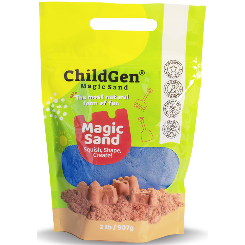 OPAKOWANIE ZAWIERA - 907g magicznego piasku w kolorze niebieskim