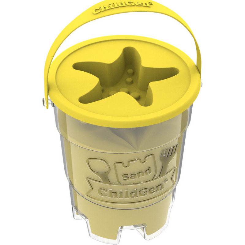 Piasek kinetyczny ŻÓŁTY z foremką 100% NATURALNY SKŁAD 500 g zapach brzoskwiniowy ChildGen 3+