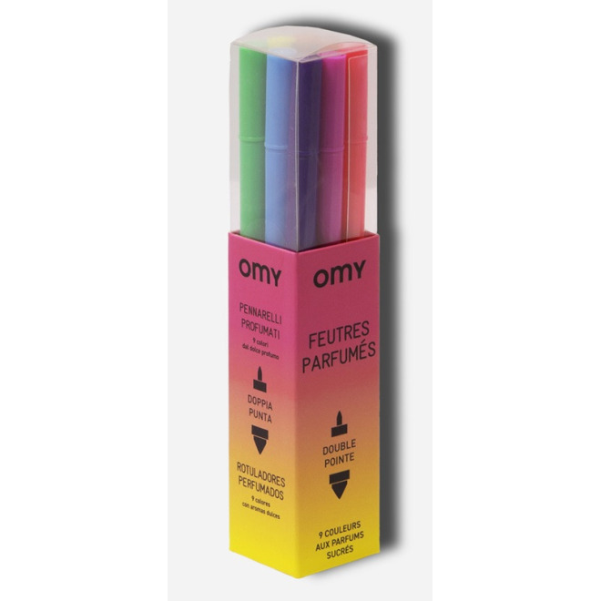 - 9 pachnących flamastrów o podwójnej końcówce (cienka i gruba)