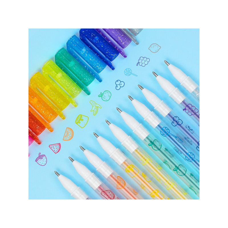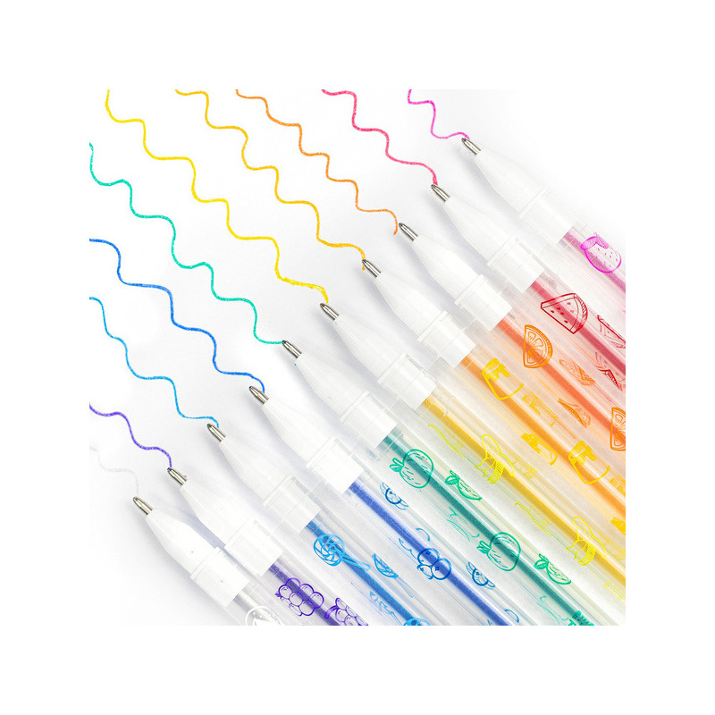 Pachnące żelowe pisaki zachęcą do kreatywnej twórczości! Pisaki są łatwe w użyciu, mali artyści będą zachwyceni dodawaniem blasku, połysku oraz słodkiego zapachu do swoich dzieł sztuki, dzięki woni: cytryny, winogron, borówki, cukierków, jabłka, arbuza, truskawki, pomarańczy, kremu karmelowego i banana.