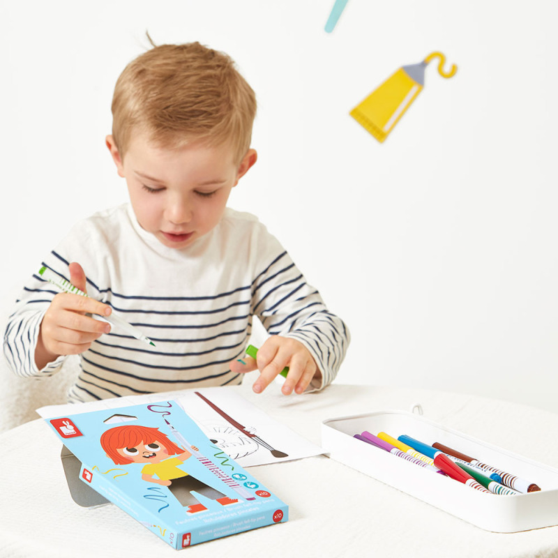 Flamastry pędzelkowe 10 kolorów COLO Janod 3+