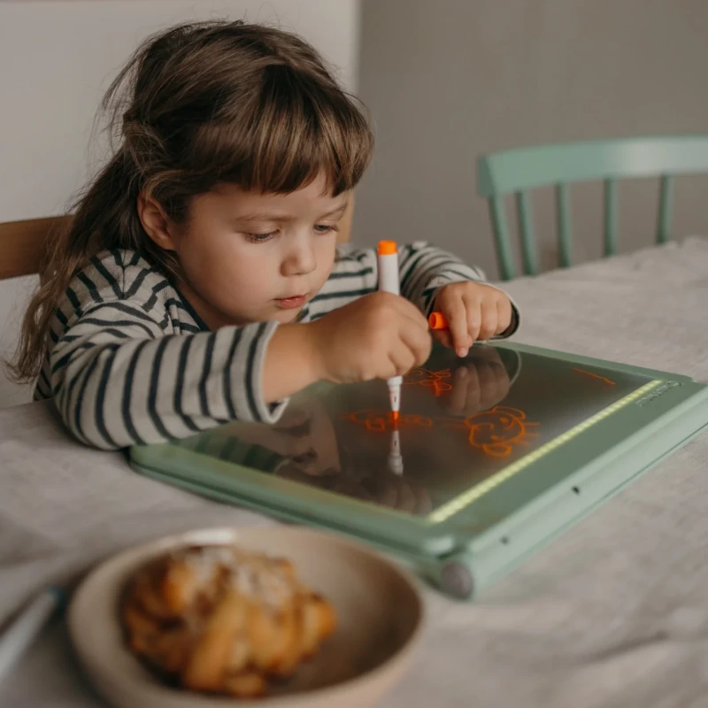 Dodaj rysunkom dziecka magii kolorów! Zmazywalne markery KIDYMARKERS w intensywnych, neonowych kolorach świetnie sprawdzą się podczas rysowania po czarnej tablicy tabletu KIDYDRAW-PRO. Efekt fluorescencyjny sprawia, że prace błyszczą w ciemności – robiąc prawdziwe wrażenie!