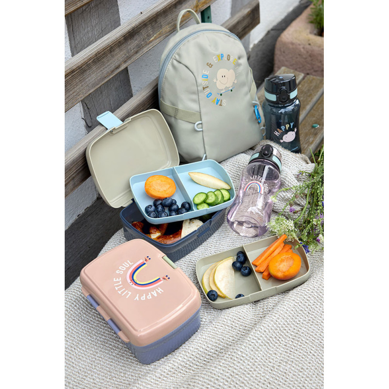 i motywy pogodowe (chmura, słońce, tęcza). W kolekcji znajdują się m.in.: plecaki, bidony czy lunchboxy.