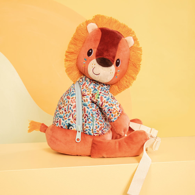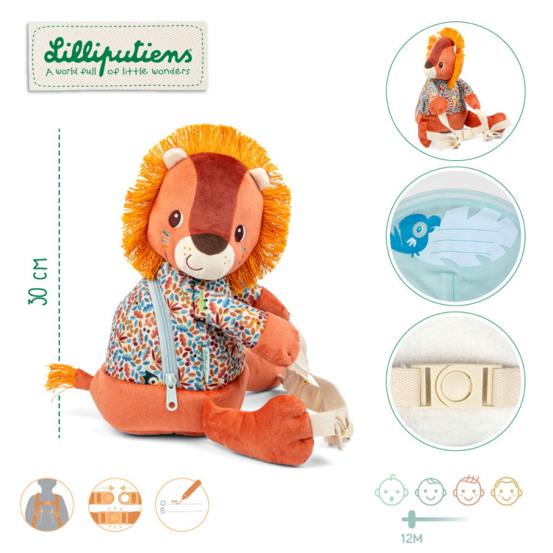 Uroczy miękki plecaczek w kształcie Lwa Jacka belgijskiej marki Lilliputiens. Funkcjonalny, lekki i wygodny. Idealny dla maluchów, do przedszkola i na krótkie wycieczki. Jest zapinany na suwak, ma łapki z szelkami z regulacją długości oraz dodatkowy pasek stabilizujący i odciążający plecy, zapinany na łatwy w obsłudze zatrzask. A także grzywę, ogon-pędzelek i mini-uszka.