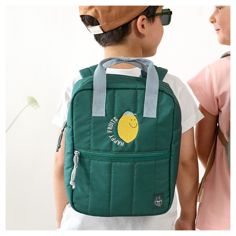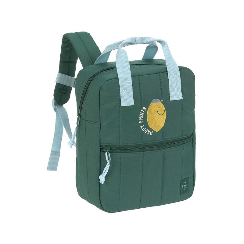 Funkcjonalny i stylowy plecak na co dzień! Mini plecak marki LASSIG to doskonały wybór zarówno do przedszkola, jak i na wycieczki. Jest lekki, wygodny i ma optymalną pojemność 7 litrów. Wyróżnia się oryginalnym designem: ciemnozielony materiał kontrastuje z błękitnymi detalami, a z przodu znajduje się urocza aplikacja z żółtą cytrynką i napisem „Happy fruits”. Materiał plecaka jest łatwy w czyszczeniu i odporny na wilgoć.