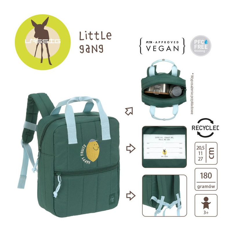 Ciemnozielony plecak dla przedszkolaka Little Gang Lemon dark green Lassig