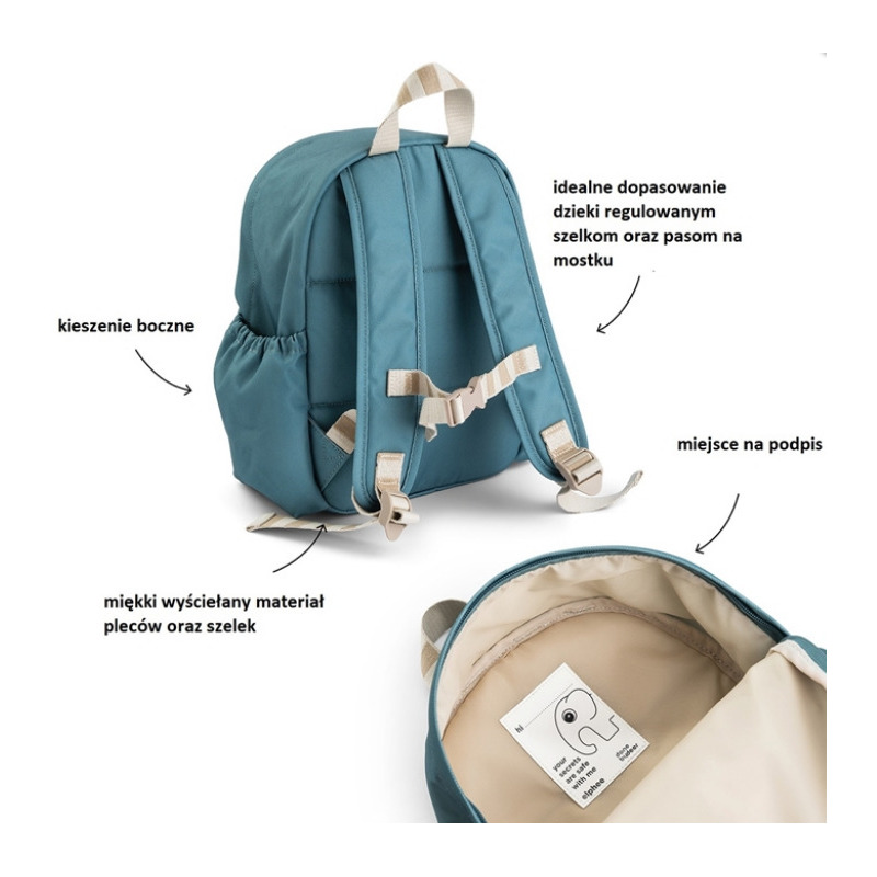 Plecak wykonany jest z trwałego, wodoodpornego materiału, który wytrzymuje codzienne małe i duże niespodzianki.